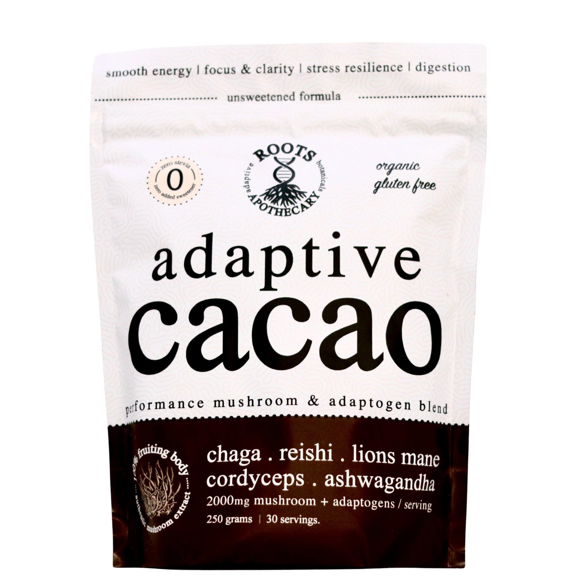 adaptive cacao blends have a wide range of holistic benefits with rich & powerful anti-oxidants, prebiotic fiber, vitamins, minerals and phytonutrients. authentic chaga is one of the most powerful antioxidants in the world with an orac rating of 52,000 and is known for improving immune response and balancing inflammation. ashwagandha & reishi are some of the most fundamentally beneficial remedies on the planet with powerful immune boosting and stress balancing properties that strengthen your body’s ability to heal itself. cordyceps and lions mane energize the mind and body for endurance and resilience to conquer life’s many challenges. roots apothecary adaptive cacao is the ultimate holistic combination for overall mental and physical health.