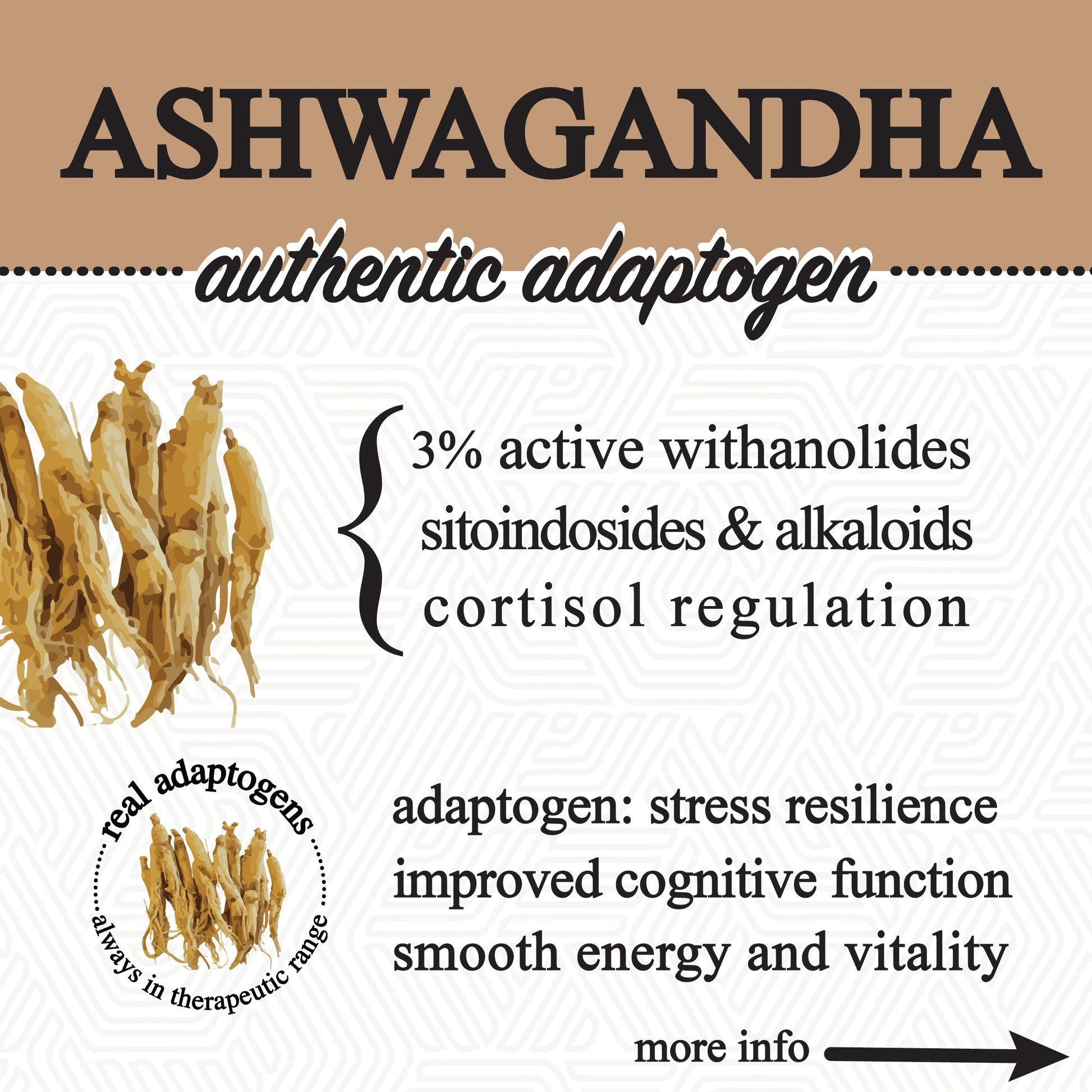 ashwagandha is considered the most fundamental adaptogen with powerful balancing influence on the stress response (hypothalamus- pituitary-adrenal system or HPA axis). balancing stress response helps to lower baseline stress and cortisol levels, stabilize mood and support sustainable energy levels.