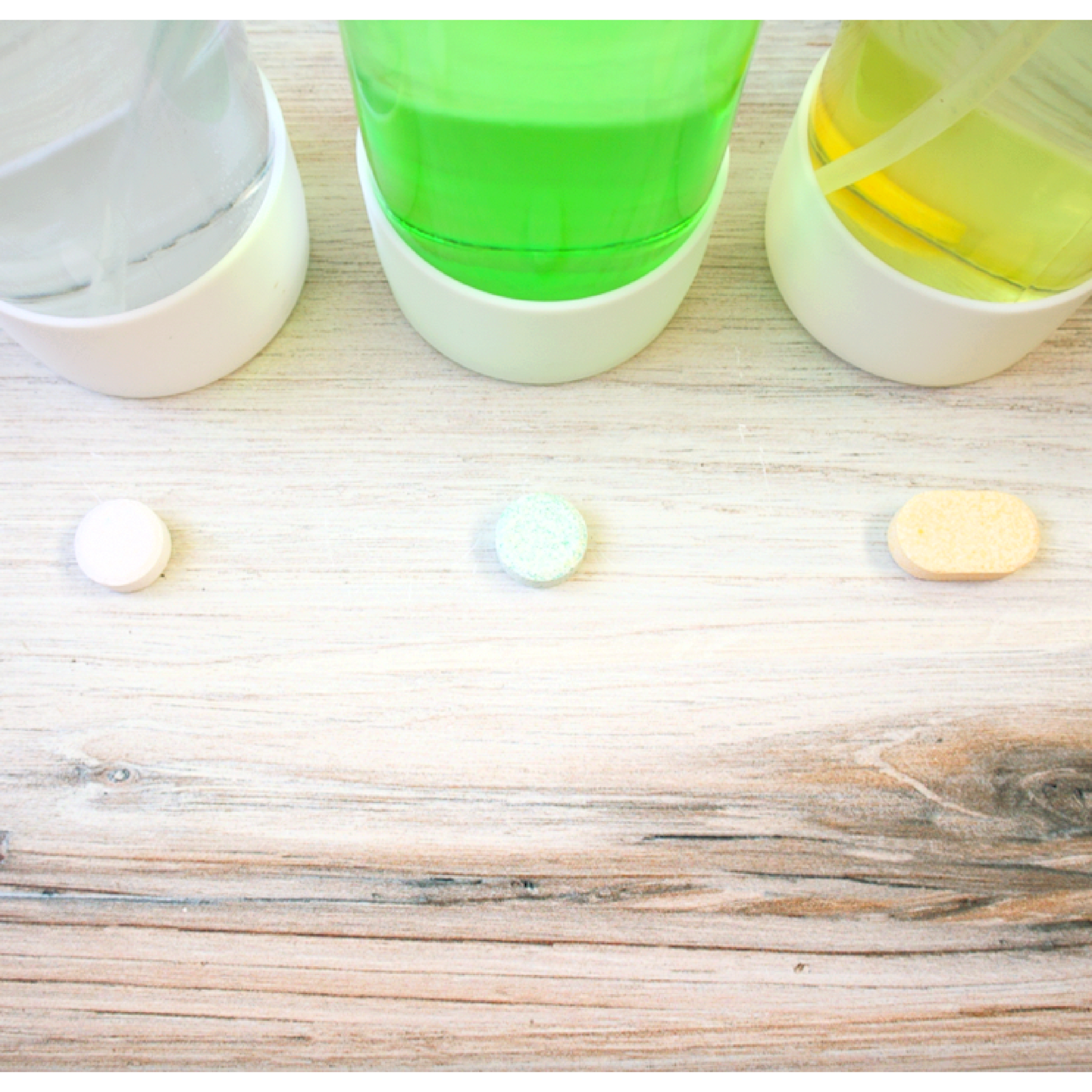 These cleaning tablets are a unique innovation in household cleaners. By concentrating a tough-on-dirt/ safe-for-families cleaner into tablet form we eliminate harm toxins in the home & the very unnecessary plastic packaging. Now instead of throwing out cleaning spray bottles you can pop one of these guys in, add water & reuse the same bottle over & over again! Simply add one of these cleaning tablets into a 16 oz. glass spray bottle, fill it with water, & you are good to go! You can use these tablets to clean all of the different surfaces in your home; ceramic, tile, glass, & stainless steel. The best part about these tablets is they contain no harsh, crazy chemicals. NO BLEACH. NO AMMONIA. They contain biological enzymes that decompose stains to achieve a squeaky clean! They are 100% family & pet safe! Every order comes with 6 tablets.