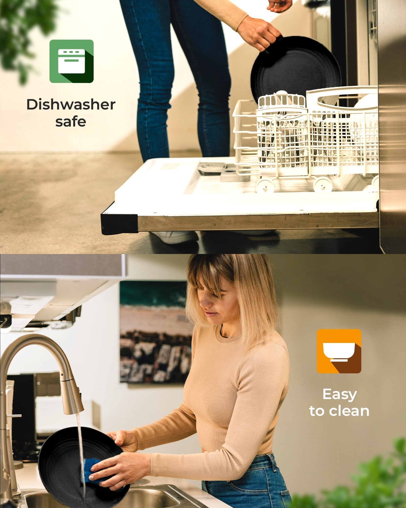 Environmentally Conscious Design: Dishwasher-safe and nature-based alternative to heavy stoneware and paper plates, promoting eco-friendly choices and reducing plastic consumption.