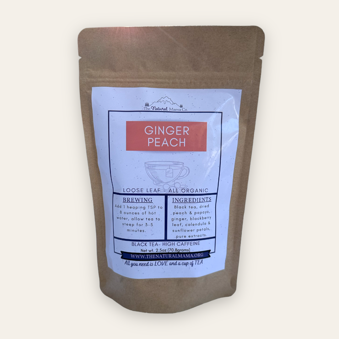 Ginger Peach Black Tea is an aromatic, and comforting tea that warms the senses with each sip. Ginger peach black tea gives you the flavor of perfectly ripe juicy peaches, and papaya finished off with a touch of ginger.