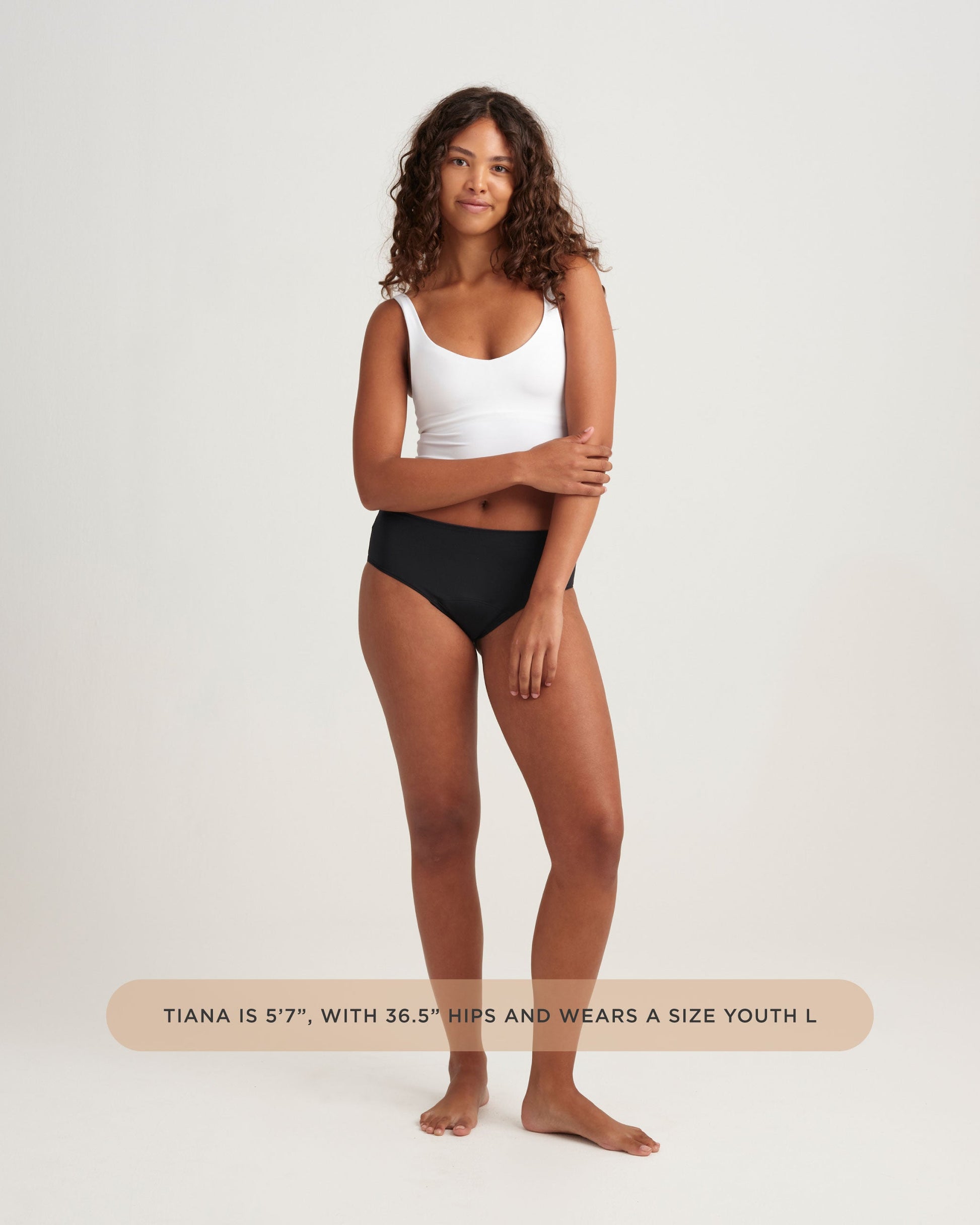 The absorbent tech you trust, now in a full-coverage teen style that will inspire confidence (and good study habits—probably). Stay comfy and dry with reliable leak-free protection made to withstand test days, heavy flow days, and overnight sleepovers. Made with soft-stretch, lightweight nylon and spandex, this fabric moves with you and won't hold you back. Toss a clean pair in your backpack to be ready whenever your period shows up.