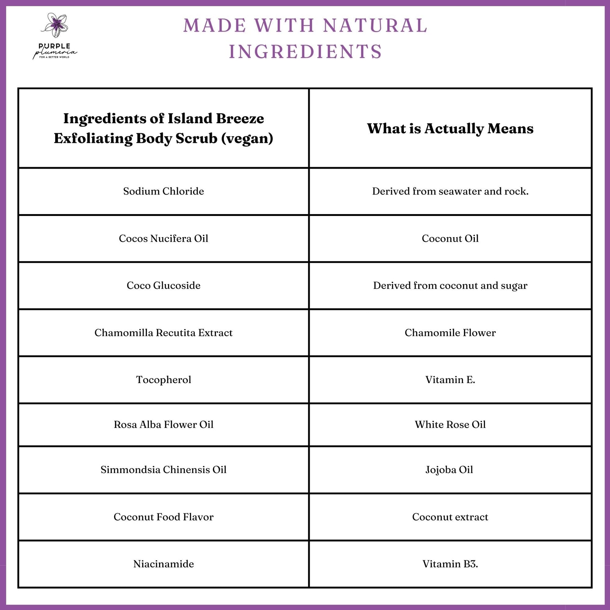 <p>Enjoy the feeling of cleansing your body and mind, with the effective and enriching ingredients of Island Breeze Exfoliating Body Scrub, a vegan scrub infused with two exotic scents to help take your imagination away to far-off beaches and beautiful flower fields. This product comes in both white rose and coconut varieties.</p> <p>With a nourishing formula based on the power of Aegean Sea Salt, this scrub is designed to easily and effectively remove dead skin cells, leaving your skin feeling tender and soft without the irritation that can come with using more abrasive skincare products. This scrub perfectly exfoliates tones, and firms the skin.</p> <p>A heaping of top-quality natural ingredients ensures the best results. This scrub is enriched with white rose extract to stabilize the pH of the skin, which helps its suitability for all skin types. Meanwhile, the coconut oil and jojoba oil help to moisturize the skin, leaving it hydrated, soft, and supple. Chamomile extract is used to reduce skin sensitivity and inflammation, making it gentle on your skin.</p> <p>Apply a small amount on the chosen areas of the body. The skin has to be wet. Spread on the body with gentle massage movements until foam forms. Leave on for 5-10 min. so that the skin can absorb all of the needed natural ingredients. Afterwards, rinse with water. Recommend for use 2-3 times a week.</p> <ul> <li>Do not use after application or another hair removal procedure</li> <li>For external use only</li> <li>Keep away from the reach of children</li> <li>White Rose Ingredients: Sodium Chloride, Cocos Nucifera Oil, Coco Glucoside, Simmondsia Chinensis Oil, Chamomilla Recutita Extract, Tocopherol, Rosa Alba Flower Oil</li> <li>Coconut Ingredients: Sodium Chloride, Cocos Nucifera Oil, Coco Glucoside, Simmondsia Chinensis Oil, Tocopherol, Coconut Food Flavor, Niacinamide</li> </ul> |