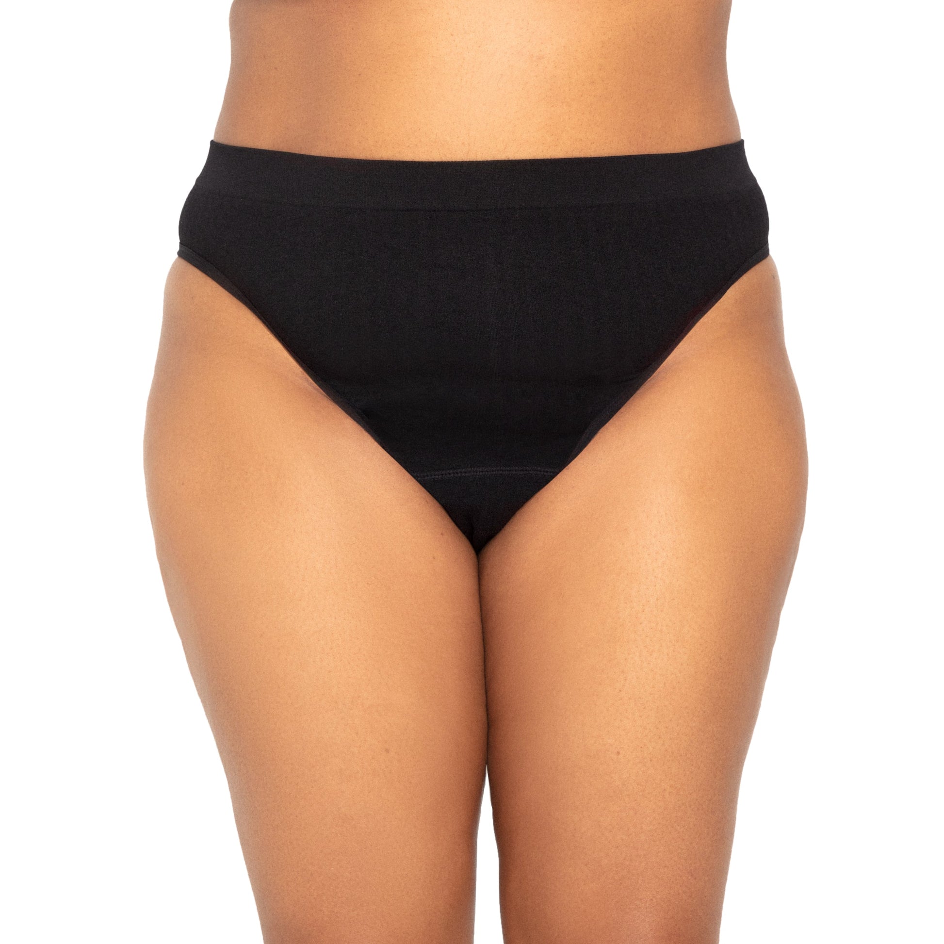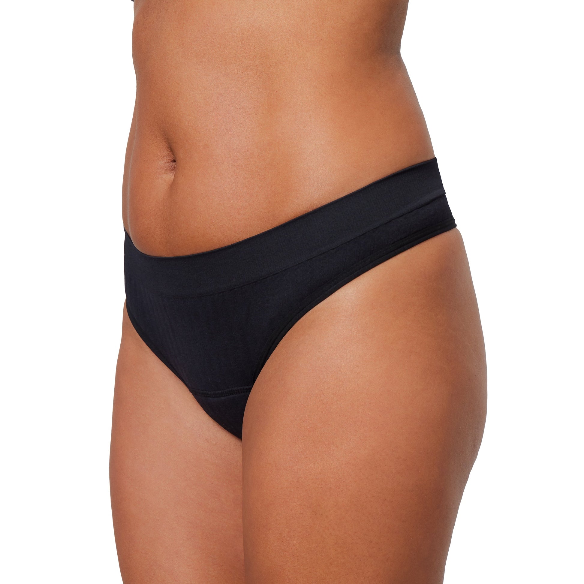 I’m the Sporty Stretch thong. I mean business. I’m a thong that can absorb period blood and I could do a triathlon. I’ve got the nice discreet feeling of a thong and the serious backup of being highly absorbent. Please play the Eye of The Tiger the first time you put me on. You’ll see. I’m made from our PeriodTech™ fabric - a super stretchy and comfy Nylon and Spandex knit that moves with you. As always, the gusset is made with organic cotton.